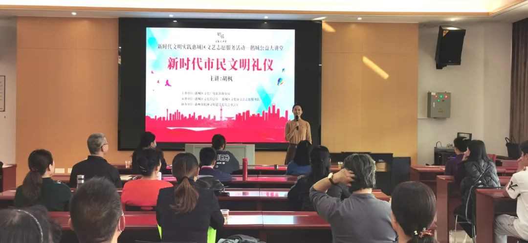 2021年12月12日下午,由惠州市精神文明建设委员会办公室指导,惠城区文化馆总馆主办,惠州市长风志愿服务队协办的“鹅城公益大讲堂”系列活动之“新时代市民文明礼仪”专题讲座在惠城区文化馆三楼大培训室举行。