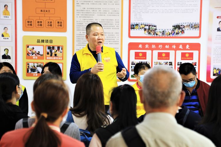 活动现场中国好人黄元盛分享了好人工作室来历以及东江义工相关志愿服务活动,包括探访、助学、义诊、普法等公益项目,以及社区常态化志愿活动,把志愿服务精神传播传承。