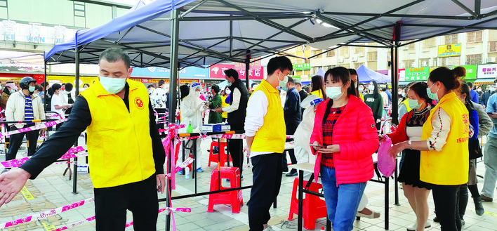 “我在凌晨4点多接到电话,6点多在各个群里召集志愿者,7点多志愿者就到达大岭街道办前集合完毕。”李乾国说,当天大岭街道、平山街道开展大规模核酸检测,需要志愿者协助。他迅速集结了约100名志愿者,全力支援两街道大规模核酸检测工作。