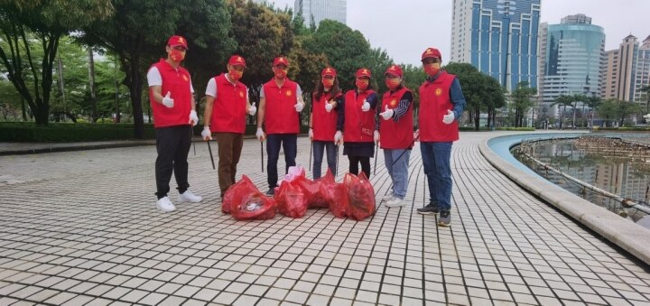 做完当天疫情防控宣传工作后,志愿者们在江北体育公园捡拾垃圾。经过一番仔细搜寻,空塑料瓶、纸巾、废弃口罩等生活垃圾被放进一个个垃圾袋,放到了统一收集点。志愿者邓卫强说,做志愿服务让周末变得更有意义,人人都做好疫情防控措施,一起爱护卫生环境、关爱自然,惠州就会越来越美丽。