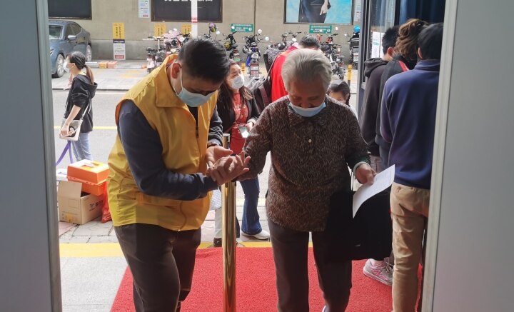 “阿伯,您稍等!我给您登记下信息哈。”“您这边上楼打疫苗,要注意上下楼台阶。”“阿婆,您的留观时间到了,我扶您下楼。”在麦地卫生服务中心等接种点现场,志愿者们穿梭在疫苗接种人群中,马不停蹄地带着老人完成一项项流程。每一个环节都有志愿者指引陪护,既减轻了医护人员的工作压力,又缓解了老人们的紧张情绪。