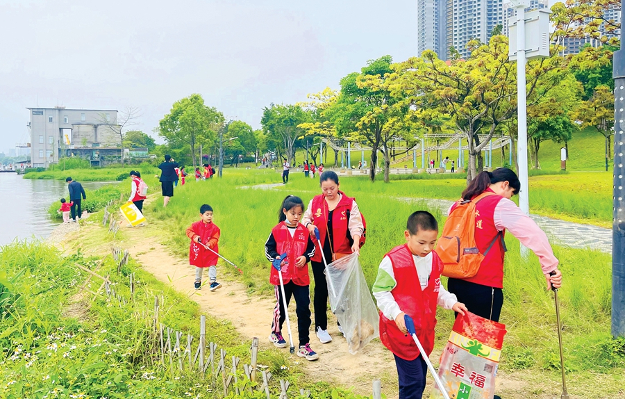 弯腰、夹起、装袋,一片片散落的垃圾“回家”了。“虽然志愿活动很累,但我感觉很有意义,我以后还会参加。”今年读3年级的吴若涵第一次跟妈妈参加志愿活动,她感受到环卫工的不容易,以后会更加积极保护环境。