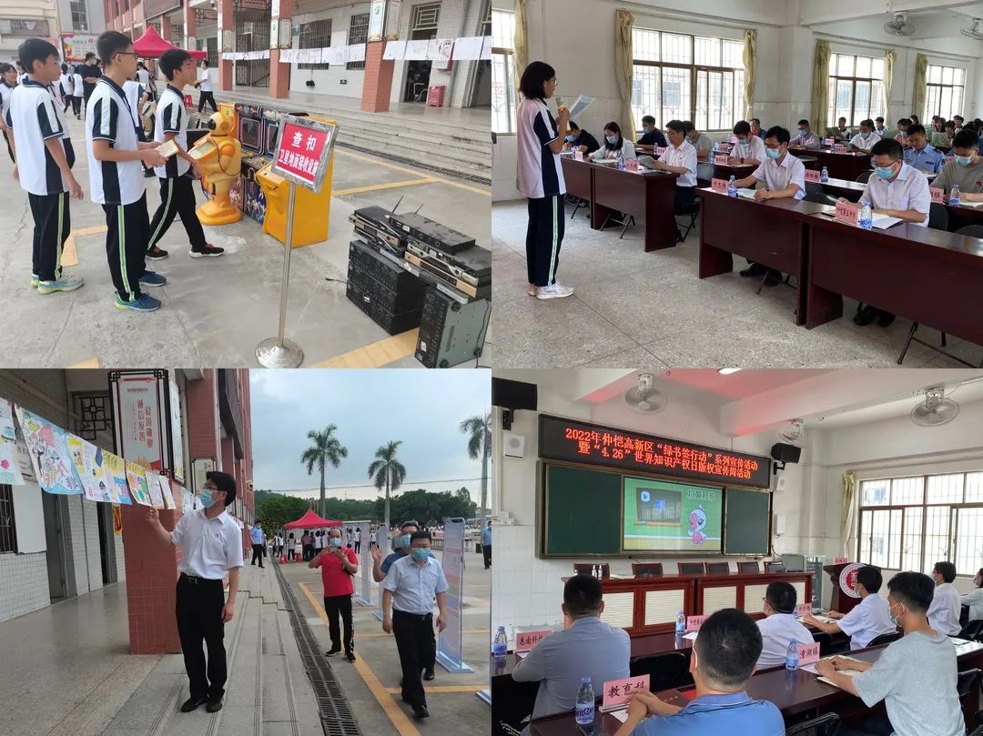 4月22日下午,2022年仲恺高新区“绿书签行动”系列宣传活动暨“4.26”世界知识产权日版权宣传周活动在仲恺第五中学举行。区“扫黄打非”办副主任、文化执法大队大队长、潼湖镇党委副书记江杰锋,潼湖镇宣传委员于志伟以及区“扫黄打非”办全体工作人员、各园区、镇(街道)“扫黄打非”业务负责人、潼湖镇辖区中小学“扫黄打非”负责人、区宣教文卫办相关科室业务负责同事、仲恺第五中学师生代表参与本次活动。