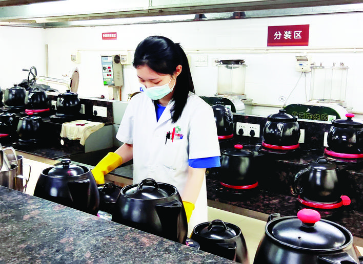 市中医医院药剂室工作人员坚守岗位为患者熬制中药汤剂。