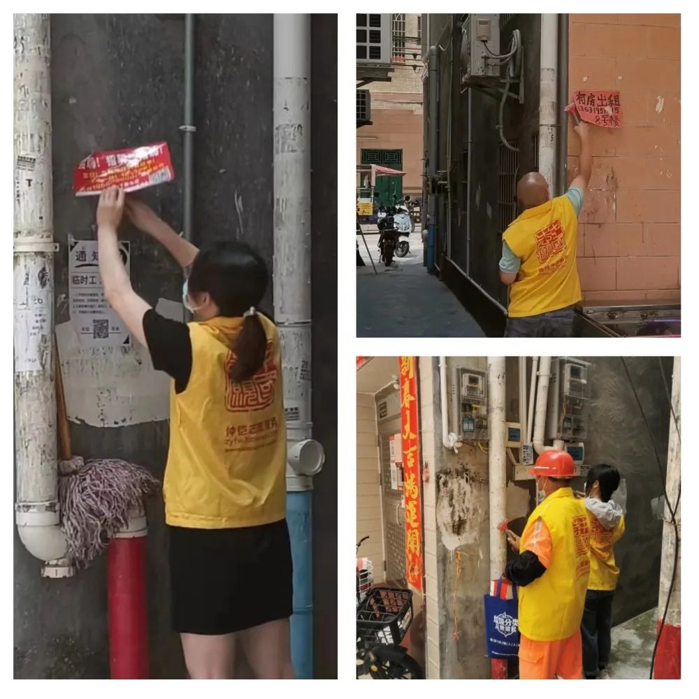 环卫工人志愿者清理“牛皮癣”为创文添砖加瓦