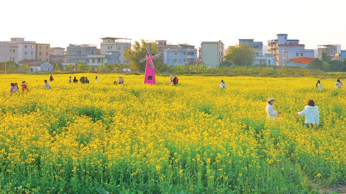 “乡村振兴要靠产业带动。传统花海项目常陷入‘花期一过,门庭冷落’的困境,土地季节性闲置问题突出。”张村村党支部负责人说,为此,党支部带头作调研、引产业,破解发展难题。通过“企业市场化运营+乡村自然资源整合”,联合惠州市好艺源农业发展有限公司对近400亩“冬闲田”进行科学规划,打造集花田打卡、稻田窑鸡、乡村美食、农耕体验于一体的田园综合体。
