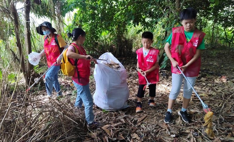 志愿者们在参与“河小青”亲子志愿环保活动。