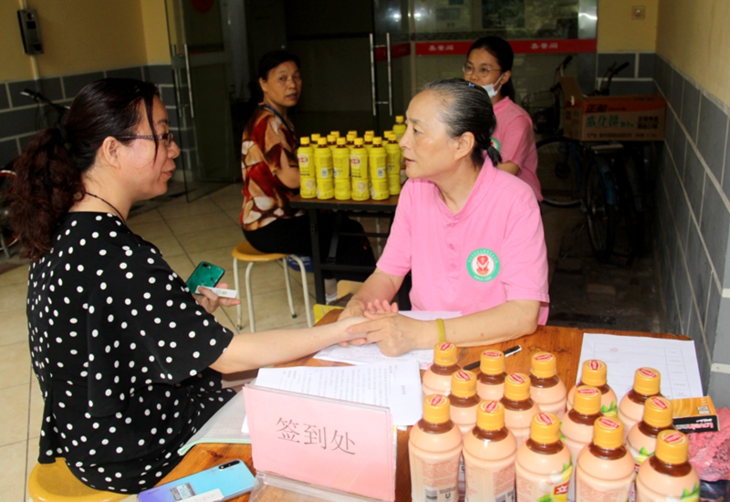 除了设立义诊室,董筱兰还带领团队创新运用“义诊服务+技能培训+公益宣讲”志愿服务模式,邀请资深中医、医务工作者进社区、乡村、企业开展义诊服务及家庭保健、急救为主题的健康公益宣讲,传播健康理念;定期对义诊组志愿者进行技能培训,提升专项志愿者的服务技能和服务水平。