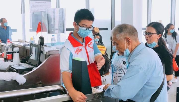 志愿者火车站服务旅客。