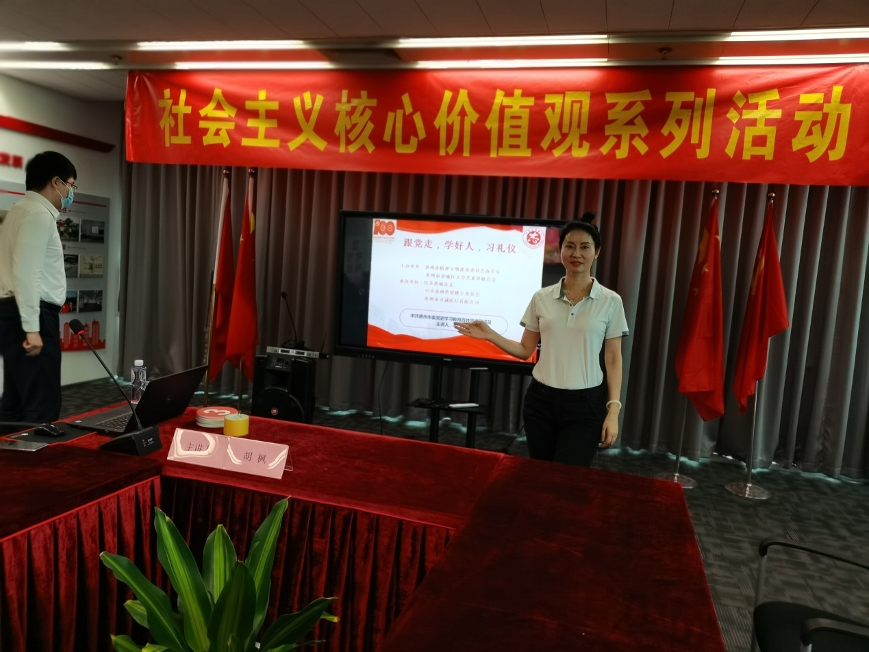 11月2日下午,由惠州市精神文明建设委员会办公室、惠州市惠城区文学艺术界联合会主办,民革惠城总支、中共惠州华贸楼宇委员会、惠州市卓诚医疗有限公司承办的社会主义核心价值观系列活动之“跟党走,学好人,习礼仪”公益宣讲会在华贸党群服务中心隆重举行。中共惠州市委党史学习教育百姓宣讲团成员、惠州市新时代文明实践志愿宣讲师胡枫受邀担任主讲人。
