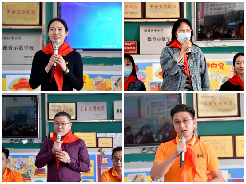 长风志愿服务队队长胡枫希望孩子们从小养成律已敬人的好习惯,从小有一颗善良感恩的心,从小埋下公益的种子,让爱心传承。民革惠城总支党员代表谢海玲勉励孩子们要牢记革命先烈用鲜血换来的和平,在幸福生活的今天要传承吃基耐劳、艰苦奋斗的革命精神!劲家庄公司代表练英锷先生表示:希望我们的点点爱心,化作燃烧的火炬,照亮我们每个同学的美好人生。达伦律师事务所执行主任罗青松律师认为,爱心需要传递和传承,希望通过一次次公益活动感染更多的社会人士传递爱心,共同关心和参与公益事业,共同来关心更多需要帮助的群体;希望同学们从小要树立爱心,学好本领,把爱心传承!