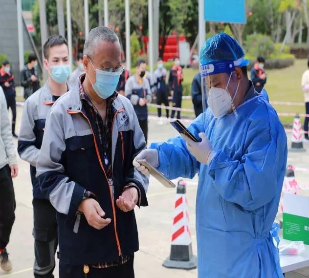 2月8日早上7:30开始,由党员、志愿者、安保人员成员组成的疫情防控小组在惠城分公司、陈江总部开展了员工返厂复工入场检查:绿色粤康码、24小时核酸检测阴性结果以及无带星的行程码方可入内。宣导要求进入园区后,非独立办公室都需要佩戴口罩在线在岗,确保万无一失,并且安排专人对产线和职能办公室展开了突击监督。另外,行政部也安排专人在线耐心的解答工厂内部来自全国各地返惠返岗员工的来电和信息。