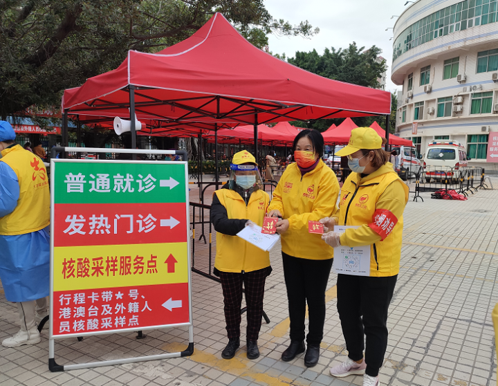 在第六人民医院,每日不少于8位志愿人员在此服务,特别是过年当天至初七,有几位老师与大学生一直在此坚持,义工团的会长吴惠娇得知初一很多核酸人员在排队,一大早就交待工作人员与其一起去现场协助,并为站岗的志愿人员精心准备了红包。春运志愿服务为“平安惠阳、有序春运、疫情防控”贡献一份力量。