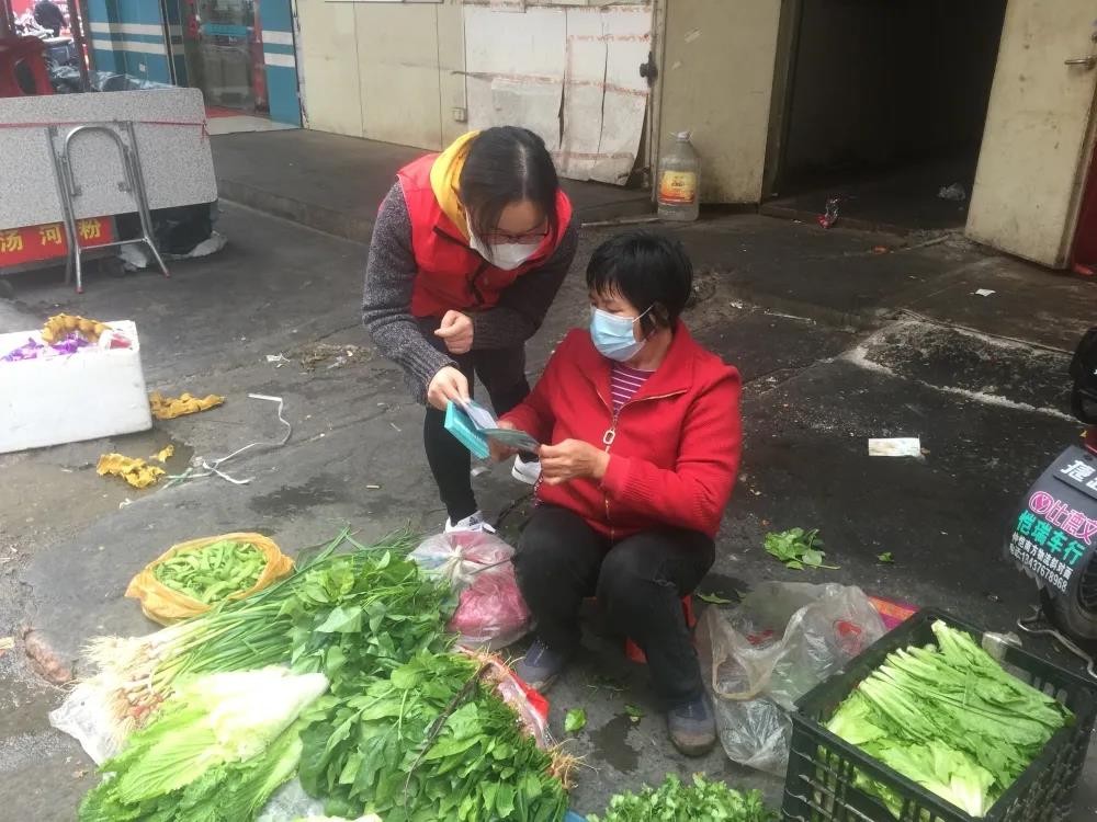 志愿者们分别在万信佳周边超市广场,菜市场,商铺、小区,公交站台等,向过往市民群众、商铺老板、小贩等进行发放和讲解《疫情防控指南》手册,引导市民群众提高健康安全和自我防护意识,正确佩戴口罩、快递安全处理、垃圾分类等。