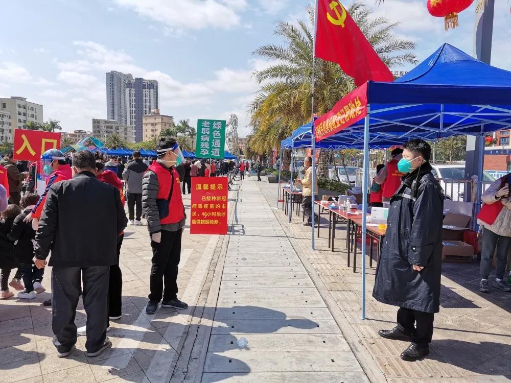 近日,仲恺高新区陈江街道办在鑫月广场海马广场设立多个免费核酸检测点,鑫月广场联合党支部支部党员及志愿者立即响应、迅速组成志愿队伍,快速、有序维护现场秩序,查看员工粤康码、行程卡及录入检测信息,当日完成陈江御湖社区居民、商户及企业员工的核酸检测采样工作,为有序复工复产创造健康提供安全保障。