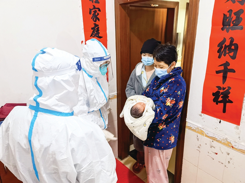新华社区“三人小组”和潼侨卫生院工作人员到管控期间出生的“虎宝宝”家,详细了解宝宝及妈妈的身体状况。