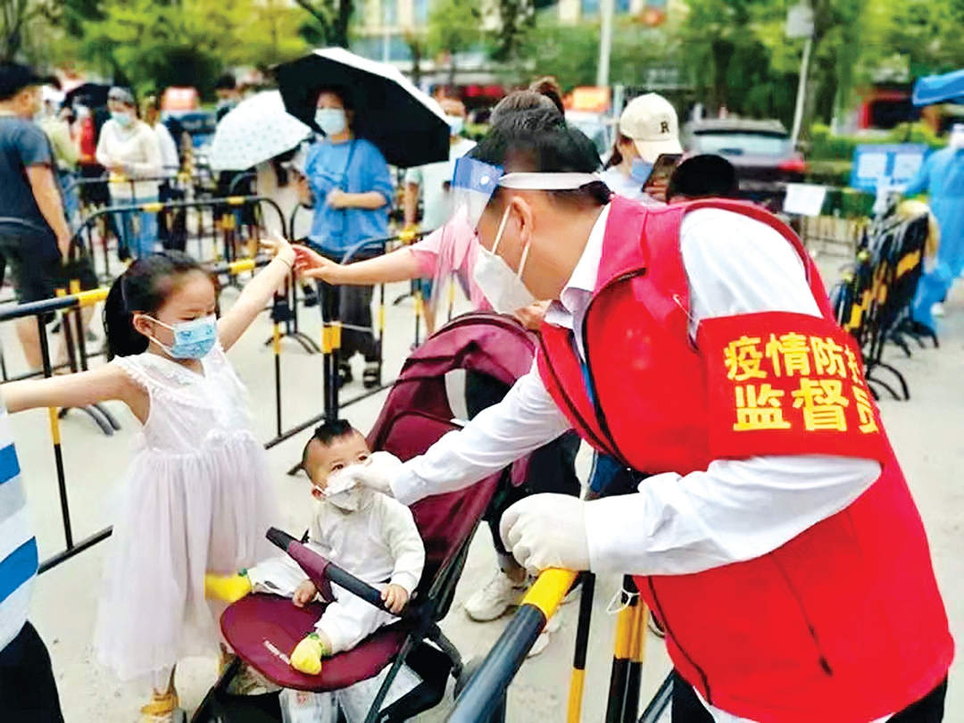 穿起“黄马甲”,他们就化身为无所不能、有求必应的“大侠”:一边手持“大声公”维护秩序,反复提醒排队群众注意保持距离,一边指引群众扫码;同时还要“眼观六路耳听八方”,随时关注有需要的群众……几个小时下来,他们口干了、声音嘶哑了,脚酸了、麻了也毫无怨言。