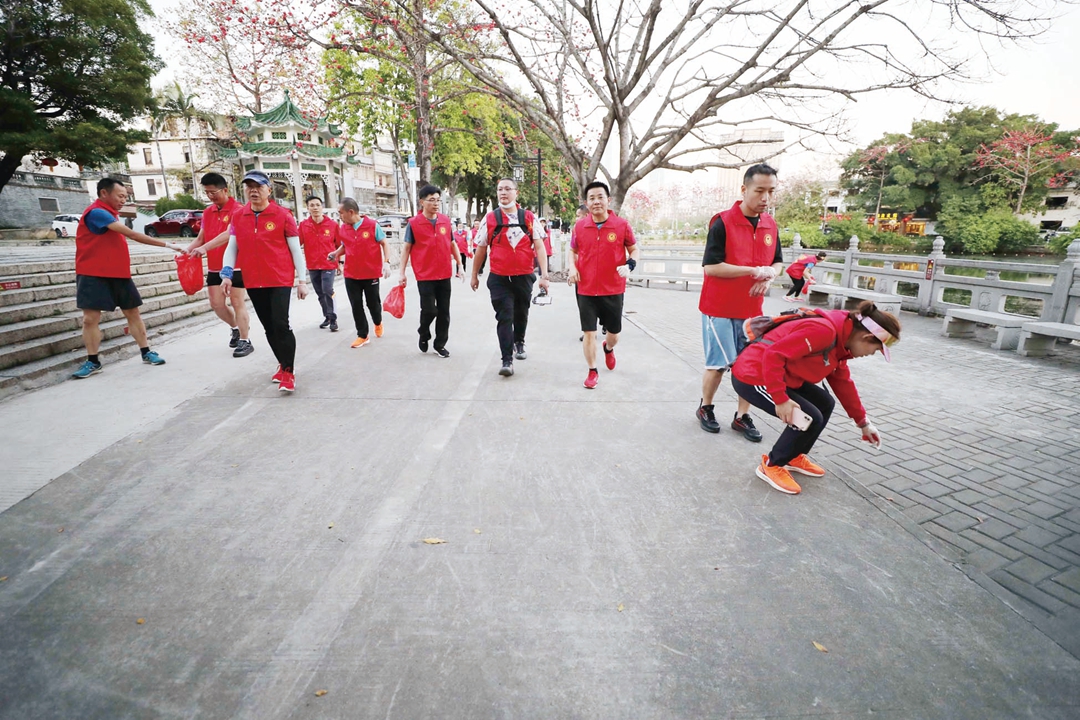 记者了解到,3月12日,惠州报业志愿服务队成立后,开展的第一场志愿服务活动,就是捡跑活动。当天上午,该服务队49名志愿者参加活动,他们拿着胶袋,边跑边查看公园草丛和道路两旁的边边角角。几名志愿者发现江岸护栏外的草丛里有一些塑料包装袋,赶紧捡起放到袋子里。