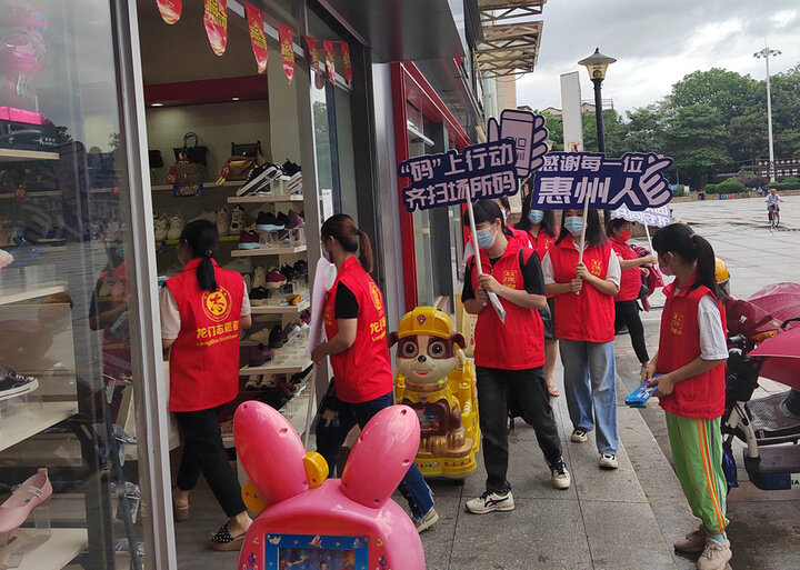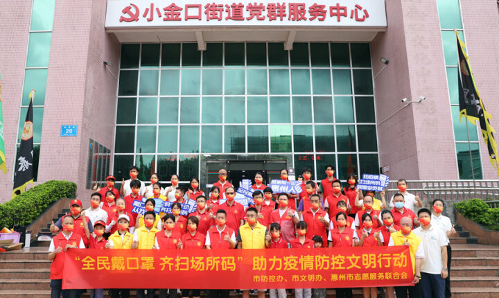 “疫情防控,人人有责,戴口罩、扫‘场所码’,从我做起,‘码’上行动,‘码’上落实”,6月19日,40多名惠州志愿者在惠城区小金口街道新时代文明实践所周边商圈开展“全民戴口罩 齐扫场所码”助力疫情防控文明行动,呼吁市民积极行动,一起巩固来之不易的防疫成果。