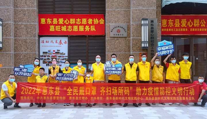 5月22日,“全民戴口罩 齐扫场所码”助力疫情防控文明行动在惠城区桥西街道新时代文明实践所举行,开启了持续一个月、全市7个县(区)同步开展的文明行动。活动开展以来,全市各新时代文明实践中心(所、站)联合全市的志愿服务组织纷纷行动,深入大街小巷派发疫情防控资料和口罩等物资,提醒群众戴口罩、扫场所码,为进一步筑牢全市疫情防控屏障注入文明力量,生动展现了新时代惠州文明风采。