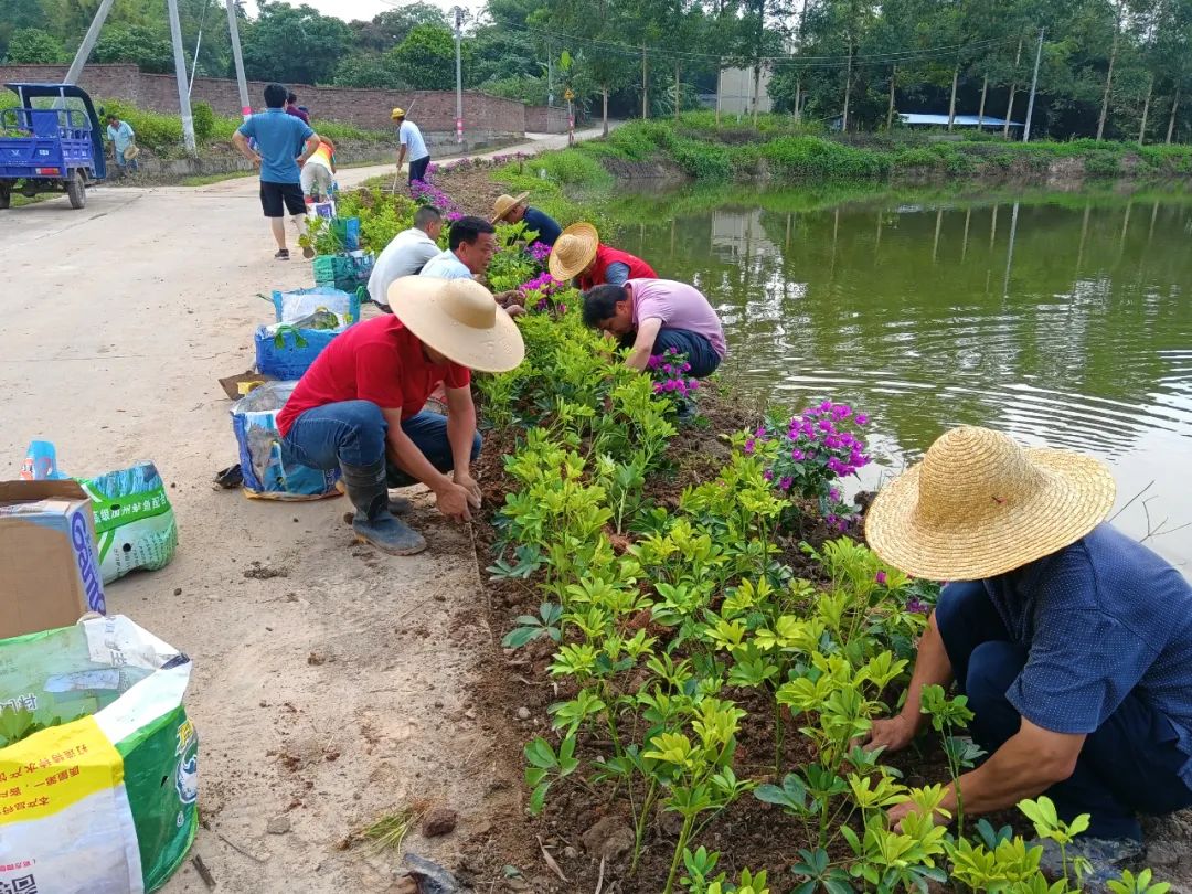 据统计,在此次种花植树绿化行动中,该村党员、干部、群众共种植三角梅400棵、鸭脚木7000株、绿化道(带)福建茶3750株、龙船花500棵、蓝雪花350棵、五色梅300棵、绣球花50棵及各种月季约200棵。