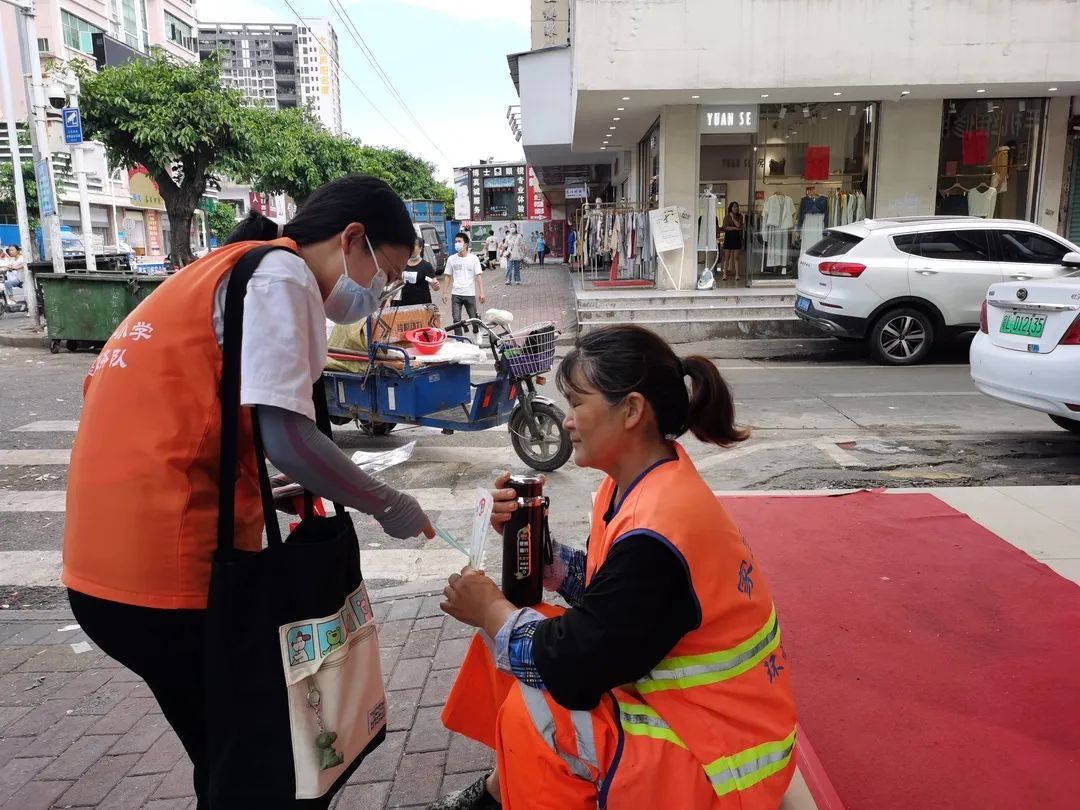 “戴好口罩对保护自己的健康有很大作用”“佩戴口罩时要注意调整鼻夹贴合面部”......活动中,志愿者们手持防疫宣传牌,深入周边街道、商铺等人口集聚区域,化身防疫劝导员,向过往市民广泛宣传疫情防控知识,提醒和劝导市民文明出行,保持安全社交距离,并为没有佩戴口罩的市民送上口罩,提醒他们做好自己健康的“第一责任人”。