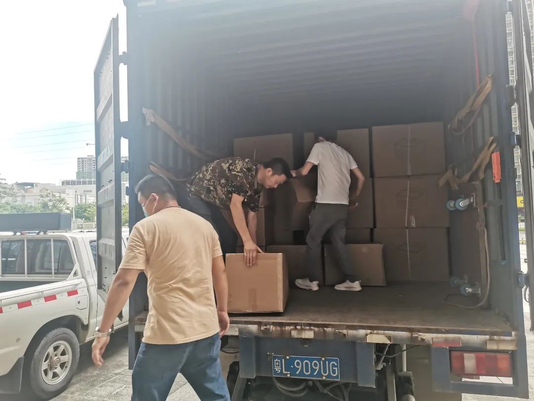 在物资接收点,志愿者不畏酷暑,奔波在货堆之间,一次次地弯腰卸货清点,同时,为提高效率、高效解决问题,志愿者互相接力,大大减少搬运难度。