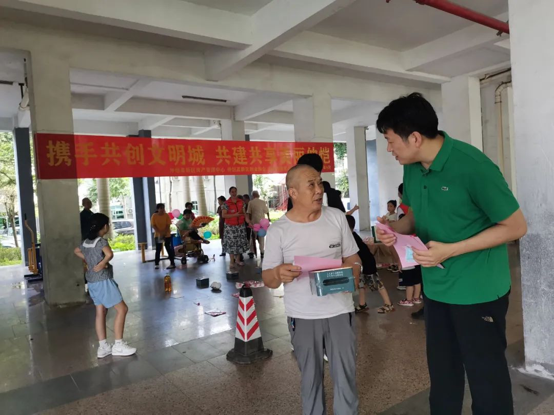 活动现场中,通过上门走访、“快乐套圈游戏活动”、发放文明手册以及倡议书等方式积极开展文明宣传活动。进一步提高广大业主对创建文明城市的知晓率、支持率、参与率,提升广大业主的文明素质,营造良好的创建文明城市氛围。