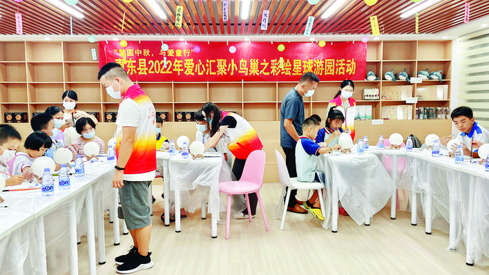 孩子们积极参加中秋节游园活动。