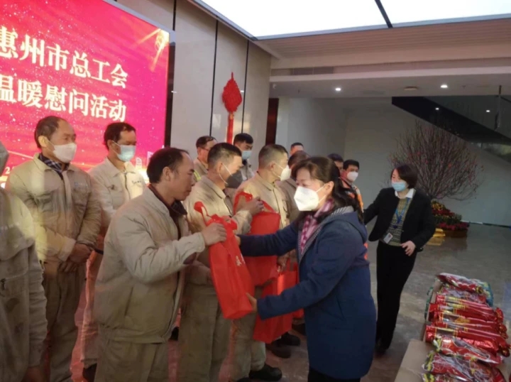“大家辛苦了,快过年了,我代表市总工会来给大家送福利了。”该负责人向一线产业工人送上慰问礼包和新春祝福,感谢大家过去一年来的辛勤付出,并祝愿他们新春快乐、阖家幸福,希望广大产业工人在新的一年里,百尺竿头更进一步,继续发扬艰苦奋斗的精神,以崭新的精神面貌和最佳的工作状态,为公司发展,为惠州加快打造广东高质量发展新增长极、建设更加幸福国内一流城市献出产业工人的一份力量。