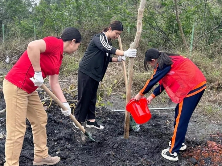 在植树现场,处处一派忙碌的景象,大家三五一组,兴致高昂,共同铲土放苗、培土浇灌,整个环节井然有序。植树的队伍当中,有团市委机关领导干部和工作人员、惠州山区计划志愿者代表,还有少先队员代表等,大家齐心协力,共同为绿美广东生态建设贡献一份力量。
