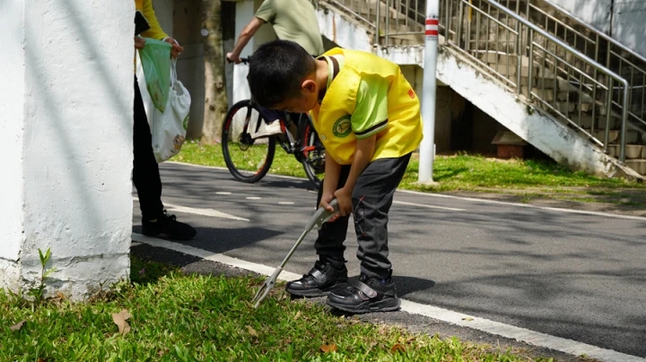 4月16日上午,惠州市机关第一幼儿园(以下简称市机关一幼)在市区东江公园举行主题为“一幼亲子时光·公益捡跑行”公益活动,该园组织了50组亲子志愿者家庭以及10余名教职工志愿者参与活动。孩子在家长的陪伴下,一边捡拾垃圾,一边向市民宣传环保理念,倡导文明新风。