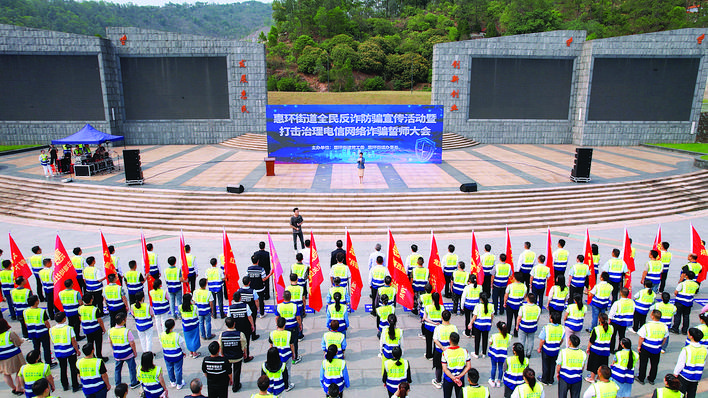 惠环街道在仲恺公园举办打击治理电信网络诈骗誓师大会。