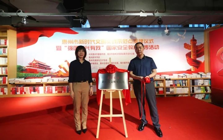 为拓展全市新时代文明实践点建设,进一步丰富新时代文明实践内涵,4月23日,惠州市新时代文明实践示范点揭牌仪式暨“强国复兴有我”国家安全教育宣传活动在惠州新华广场新华书店举行。