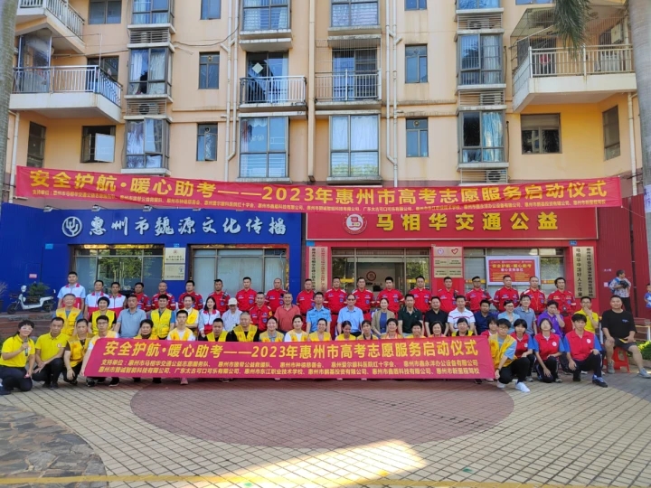 ?6月5日下午,以“安全护航,暖心助考”为主题的2023年惠州市高考志愿服务活动启动仪式在马相华交通公益志愿服务队举行。来自惠州市马相华交通公益志愿服务队、惠州市狼帮救援队等11个社会公益组织和企业的150多名志愿者,将分赴11个考点开展志愿服务,为考生顺利参加高考“保驾护航”。