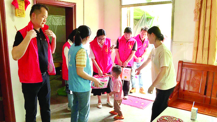 志愿者给孩子们送上慰问品。 惠州日报记者蓝斐菲 特约通讯员李文聪 摄