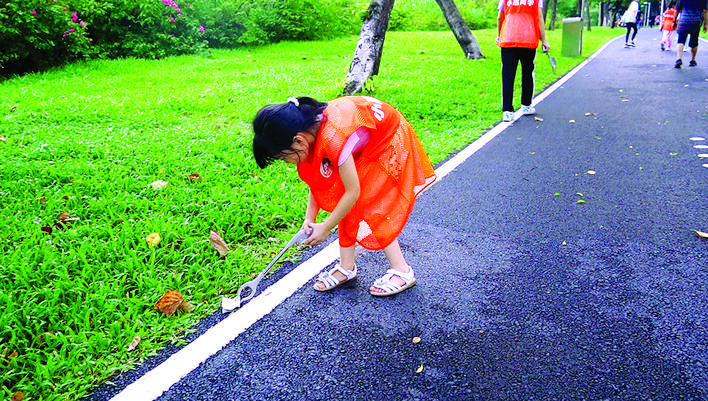 随后,身穿橙色马甲的小记者们手持垃圾夹,排好队伍,和大志愿者们一起有序地沿着江边捡跑。一路上大家认真寻找散落在地上的垃圾。“都没有什么垃圾,为什么还要捡跑?”看到干净的公园,有小记者很好奇。一起参与捡跑的大志愿者告诉大家,因为几乎每天都有志愿者在捡跑,美化了环境,传递了爱护环境的理念,市民素质提升,公园自然就干净了。