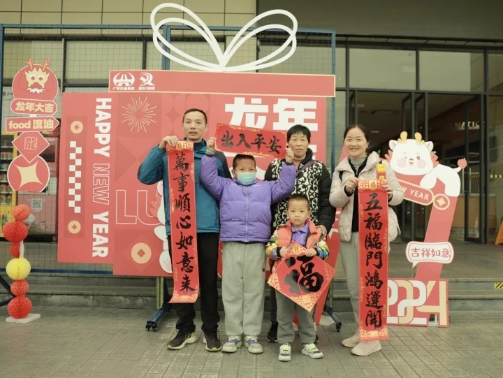 “我套中了,看来今年我要行大运了!”“我套中了‘健康’,希望今年我们一家都健健康康。”旅客们围站在一处红色许愿墙前,墙上写着“平安”“暴富”“升职”等美好愿望,大家纷纷把手上的套圈往墙上丢,希望能套住一年的好运气。志愿者们贴心递上精心准备好的龙年日历、交通安全宣传册、路线指引等“龙年大礼包”。