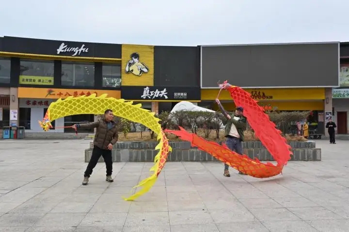 “哇!哥哥姐姐舞的龙真好看呀!”在服务区特色农产品推荐现场,两名志愿者伴随着欢快的音乐,挥舞着两条6米长的彩带龙。两条彩带龙上下翻腾,时而柔和缓慢,时而热烈欢腾,吸引了众多旅客驻足观看,掌声、欢呼声此起彼伏。