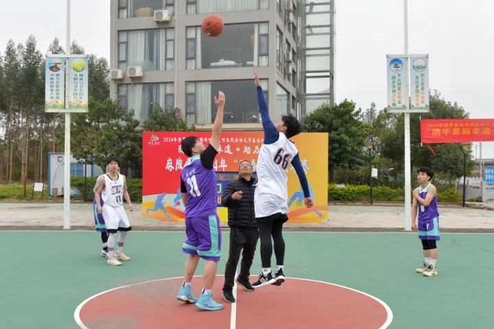 1月27日,“携手美丽非遗·助力乡村振兴”——麻陂镇2024年“迎春杯”篮球赛在富民广场篮球场开幕。一年一度的篮球赛事再次上演,将大家热情迅速点燃。麻陂镇2024年“迎春杯”篮球赛将上演32场精彩的赛事,村、社区、学校、政府等均参与其中。