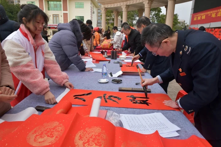 “笔走龙蛇迎新春,福喜临门送春联”活动在麻陂镇富民广场举行。