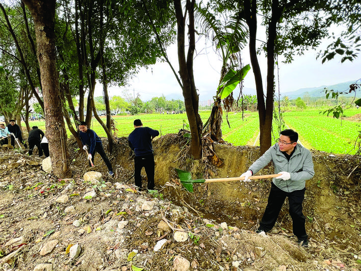 大家齐心协力清理水沟。惠州日报记者黄尉宏 摄