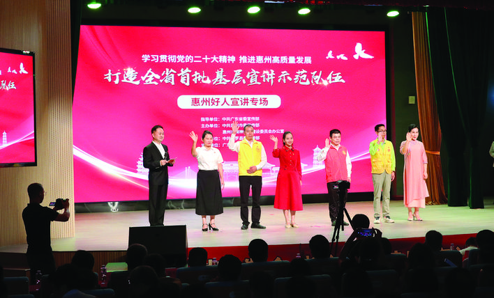 惠州还成立了“惠州好人宣讲队”,并结合新时代文明实践工作,打造“好人故事分享会”“东江义工”、好人捡跑、救捞救援、文明交通等多个好人宣讲品牌。目前,“惠州好人宣讲队”成员已超100人,日前获评全省基层理论宣讲先进集体,一批群众身边看得见的文明标杆正成为志愿宣讲员,每年累计开展各类宣传宣讲活动千余场,覆盖群众数十万人次,助力实现从“惠州好人”到“惠州人好”“惠州城好”。目前,全市注册志愿者人数达到134.68万人。