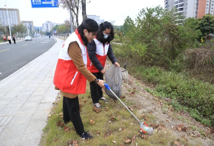 启动仪式结束后,志愿者们纷纷手持工具,从县文化馆出发,沿白沙河堤东路方向行进,开展捡跑活动。他们弯腰、俯身、仔细地拾捡落地烟头、纸屑,清理绿化带垃圾杂物等,用实际行动践行雷锋精神。
