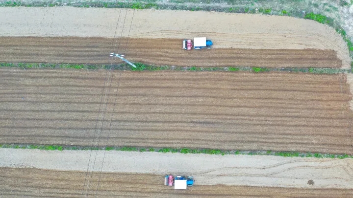 日前,在博罗县罗阳街道承粮陂村的一块农田上,伴随着阵阵机械轰鸣声,两台花生播种机在农田里来回穿梭,一颗颗优质高产花生种子被有序下种、覆土,一派热火朝天的春耕景象。