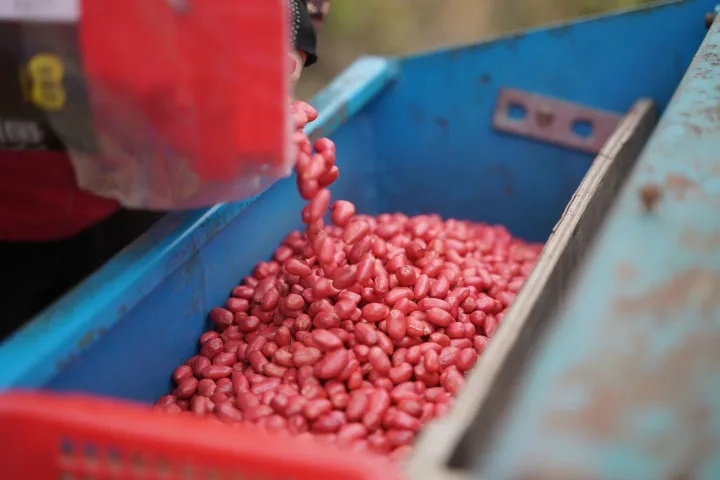 花生播种机正在农田里播种,一颗颗优质高产花生种子被种下。