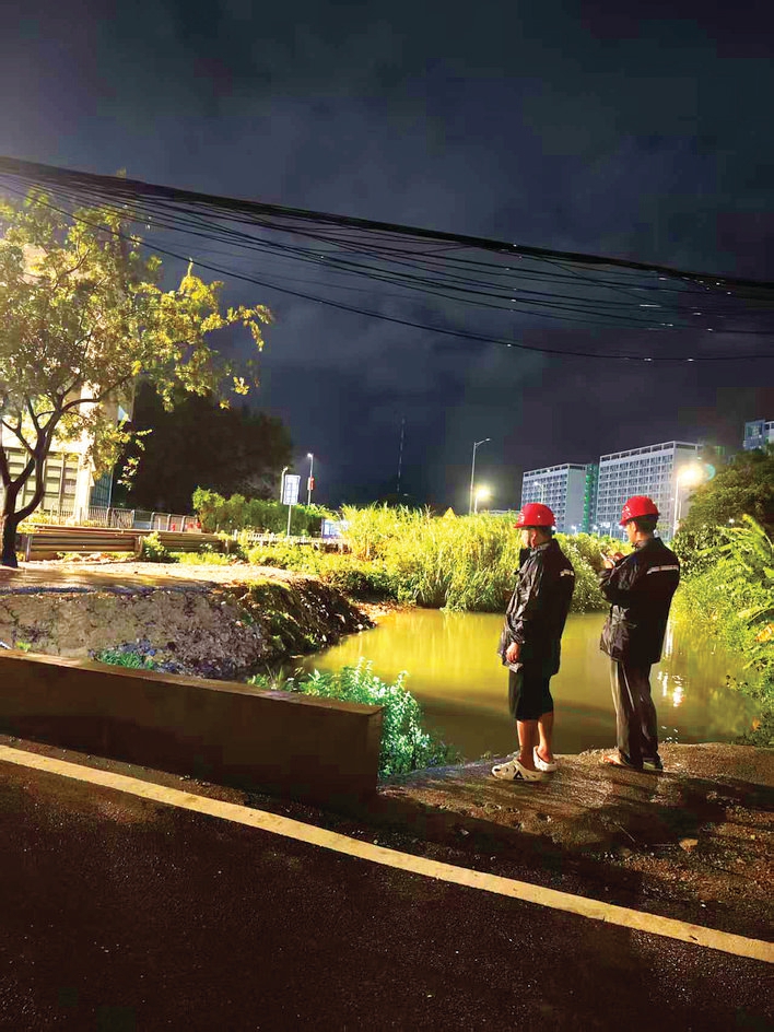 抗击台风,众志成城,不少公益救援力量也参与其中。9月24日,惠城区水口街道应急办工作人员联合惠州市退役军人战旗志愿服务总队应急救援队,到东江沿线巡查,还全面排查了水口辖区主次干道及背街小巷隐患,重点检查路侧树木、户外广告牌、交通指示牌稳固情况,及时清理路面杂物,对存在风险的设施登记并协调加固,全力消除坠物、倒伏等安全隐患。
