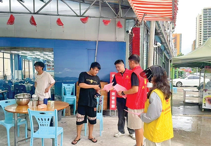 在平海社区,志愿者逐户走访沿街店铺,耐心细致地向商户讲解“门前三包”责任要求,对于落实较好的商户,及时给予表扬鼓励:“老板,门前卫生越来越好了啊,感谢你们对‘门前三包’工作的大力支持。”在他们的努力下,该镇全面落实“门前三包”制度,不仅切实提升了群众的责任意识,还在全镇范围内营造出“人人参与、家家行动”的浓厚氛围。