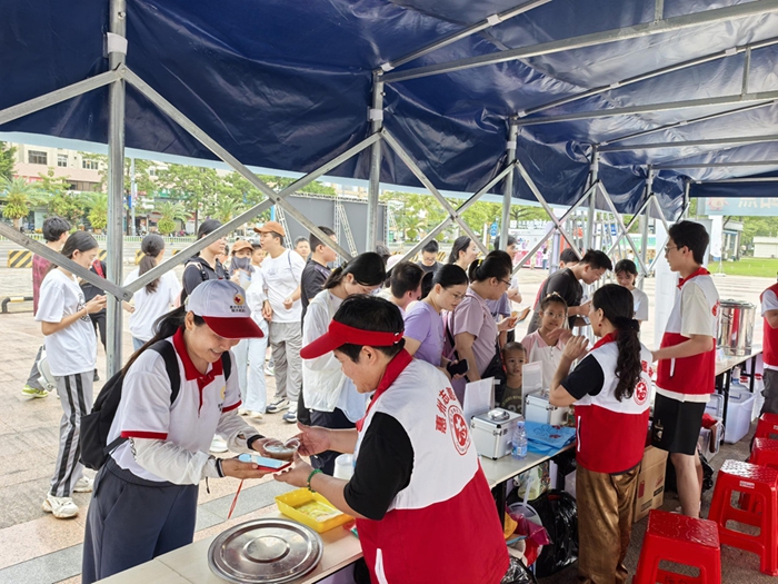 城市志愿服务站点志愿者自发熬煮广式糖水,免费供来自全国各地的观众品尝。