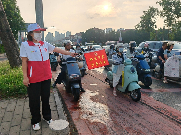 志愿者为来惠参赛运动员及市民提供文明交通引导。